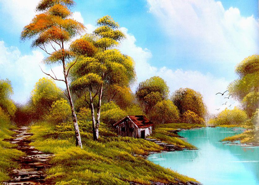 Landschaft: Lakeside Cabin (Größe 40 x 50 cm)